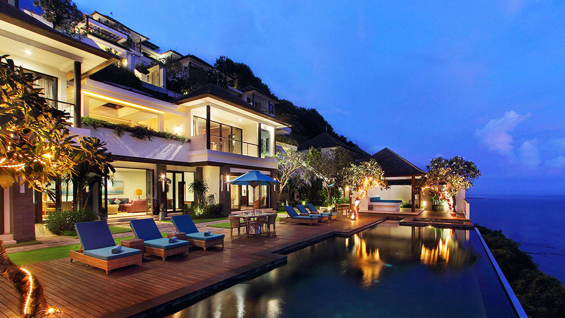 The villa came in really huge size, 700 square feet. Other great thing about this villa is that you can have an amazing 180 degrees ocean view. There is also an infinity edge swimming pool in this villa. You also can sit in the Jacuzzi and enjoy the ocean views. Near the swimming pool, there is ironwood sundeck that came with lawn and bale that offers splendid views. The guest capacity of this villa is 50 people. This villa also has dramatic setting for wedding, luxurious parties, and other events.