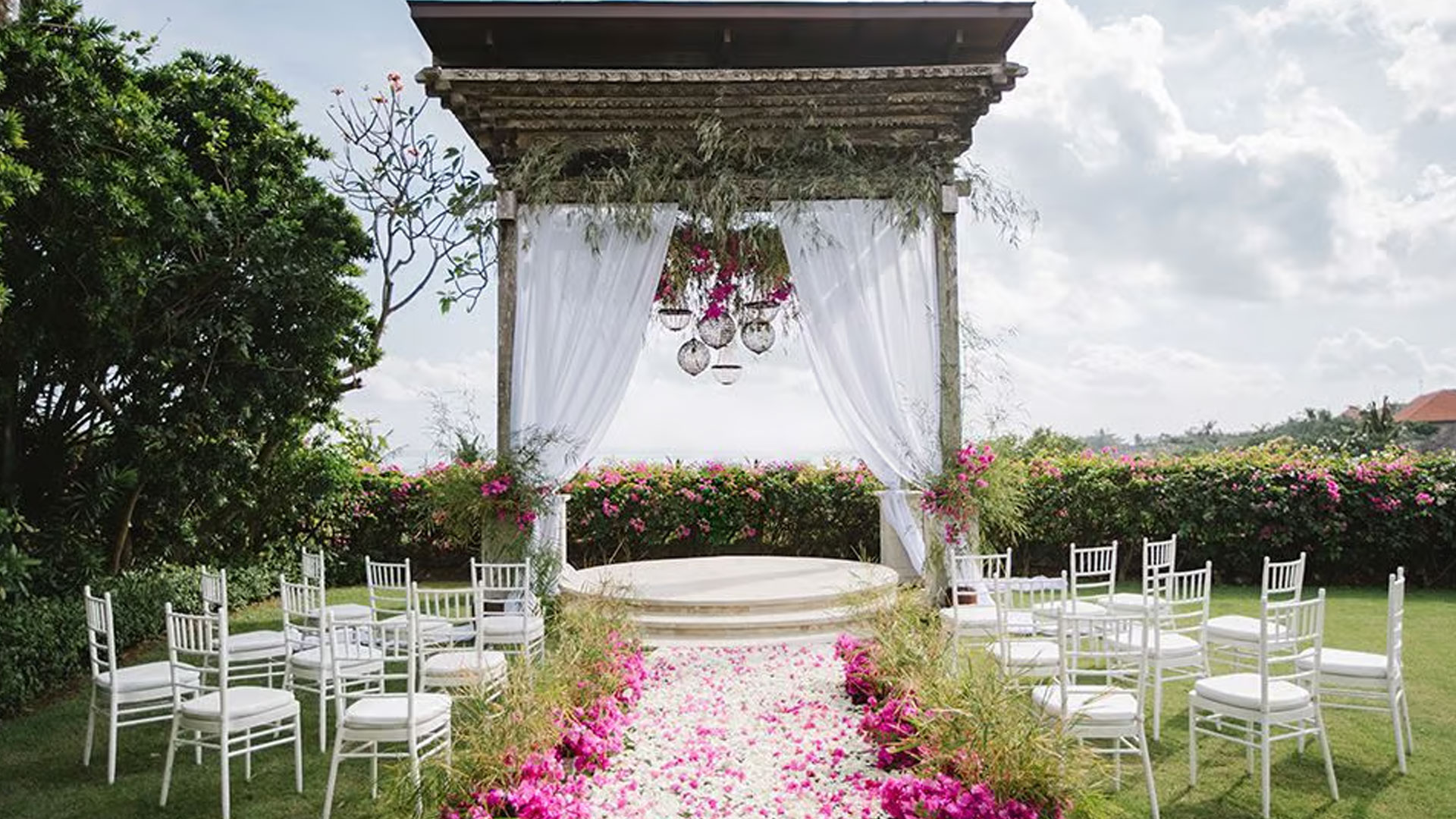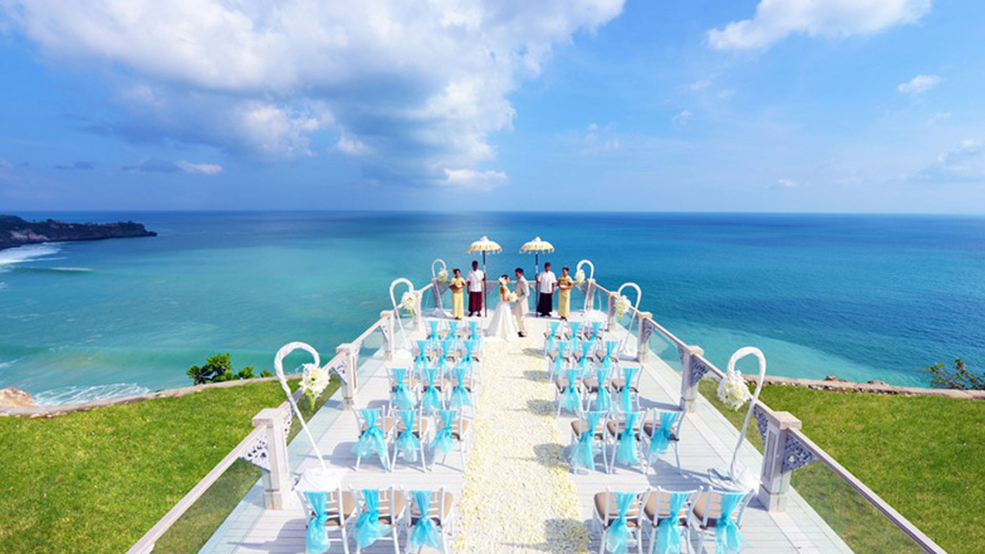 An enchanting resort and spa becomes an unforgettable wedding venue. Make your dream come true to hold a wedding ceremony in Ayana Resort and Spa for intimate celebration. It offers a hidden sea view with amazing venue. It is accentuated by 2000 white frangipani trees among canopies to accompany you in finding amazing view of sea from gazebo.
