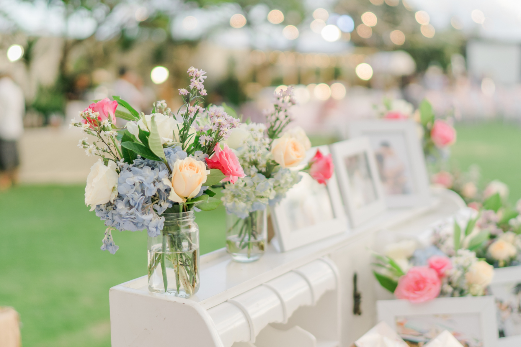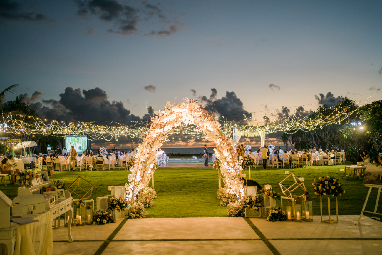 For those who want to enjoy outdoor wedding because it seems to be closer and free, you can take garden party as your main theme. Just like the name of the theme, the wedding will be held in a garden along with floral accessories. You can combine green, white, wooden materials, cream lamps, and many more to create elegant and natural ambient.